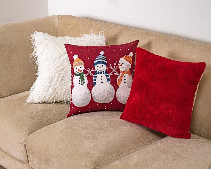 The elegant red masterpiece in Cotton reflects the showpiece of a Snowman in a customised size of 16x16 inches. Concurrently, it has the privilege of a Stainless Steel Zipper that protects the dust with a lifetime guarantee for the customers.